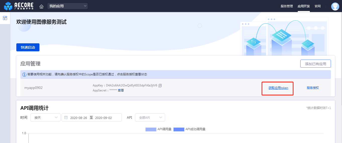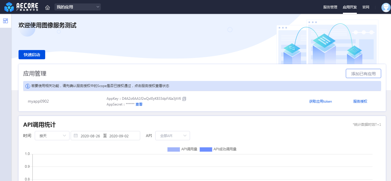 4)服务开通后进入服务控制台(以图像服务测试为例)