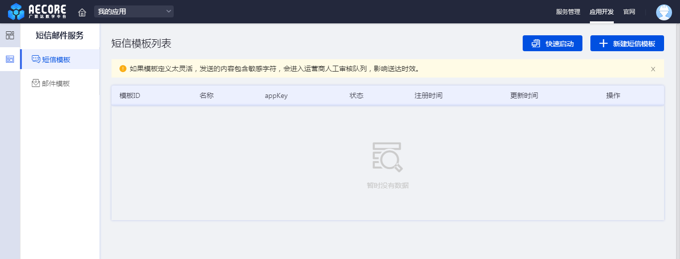 若有自定义控制台的服务,开通后默认进入该服务的控制台,如图2:短信邮件为例;