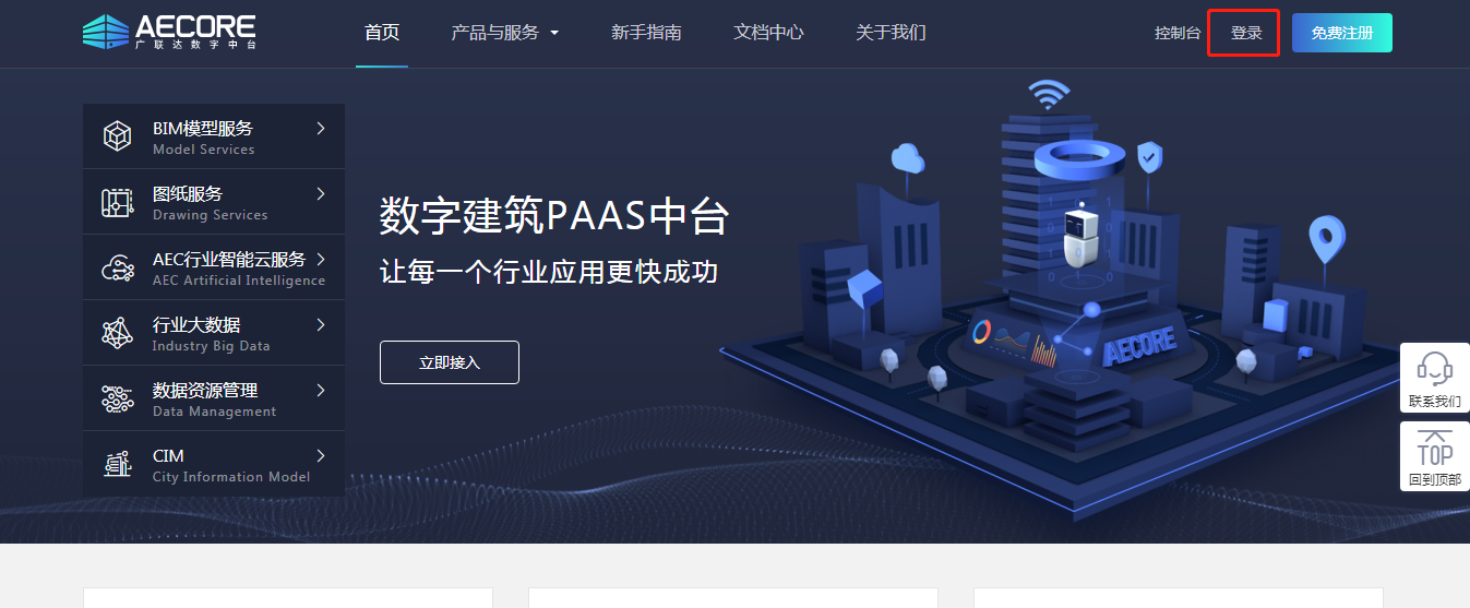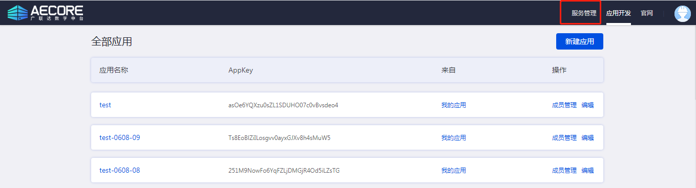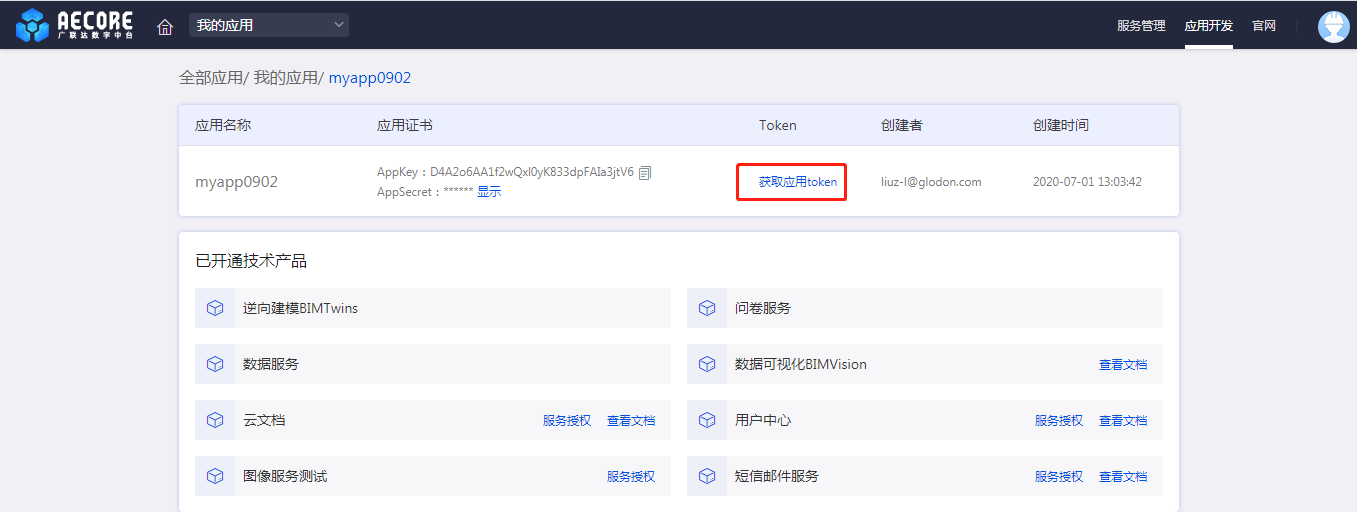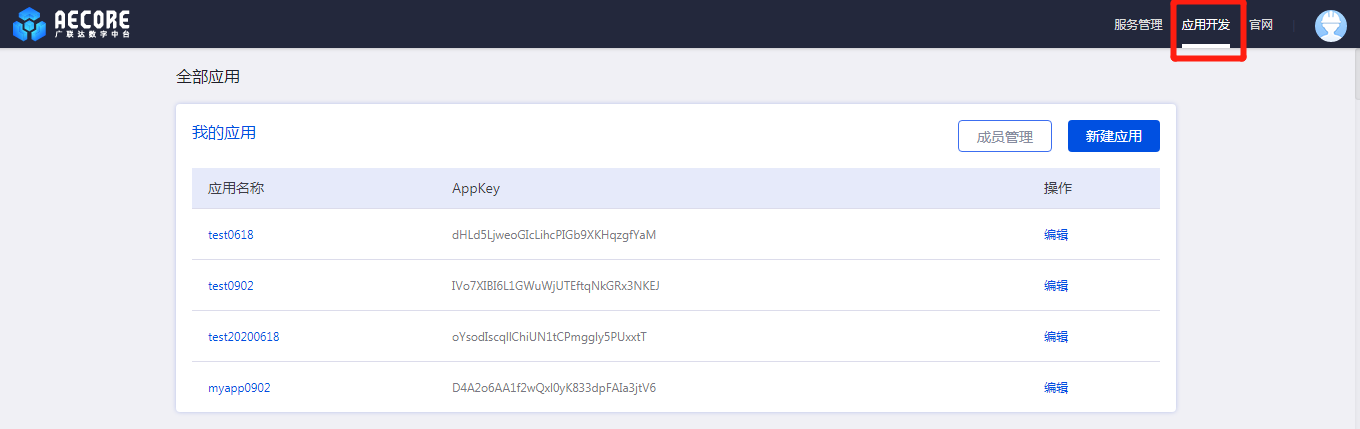 登录AECORE创建应用,若已经登录,导航栏切换至应用开发即进入ISV控制台