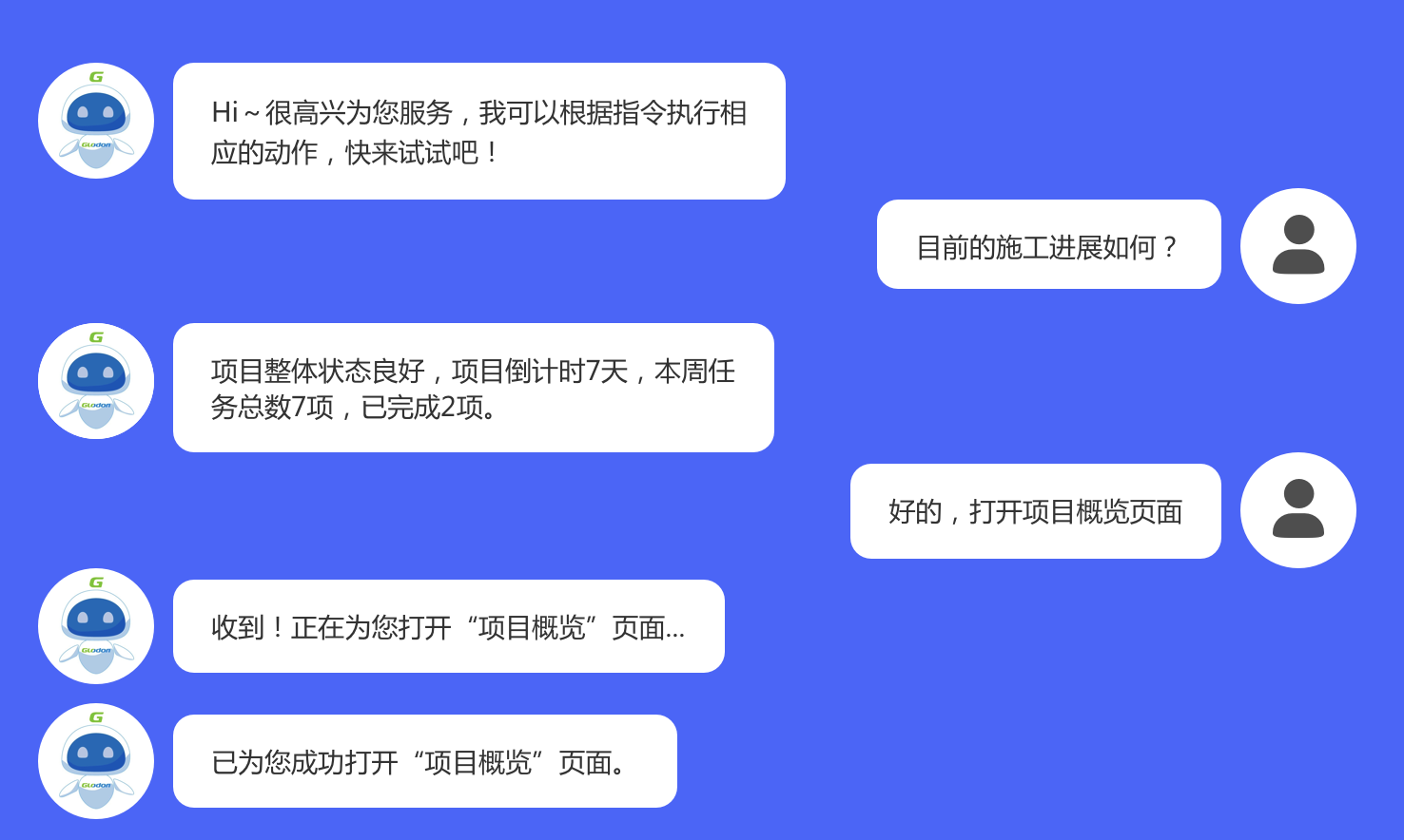 多技能组合可形成智能客服、智能助理、任务型机器人等多种解决方案,服务于建筑全流程各阶段:设计、造价、施工、运维等,助力每一个工程项目成功。