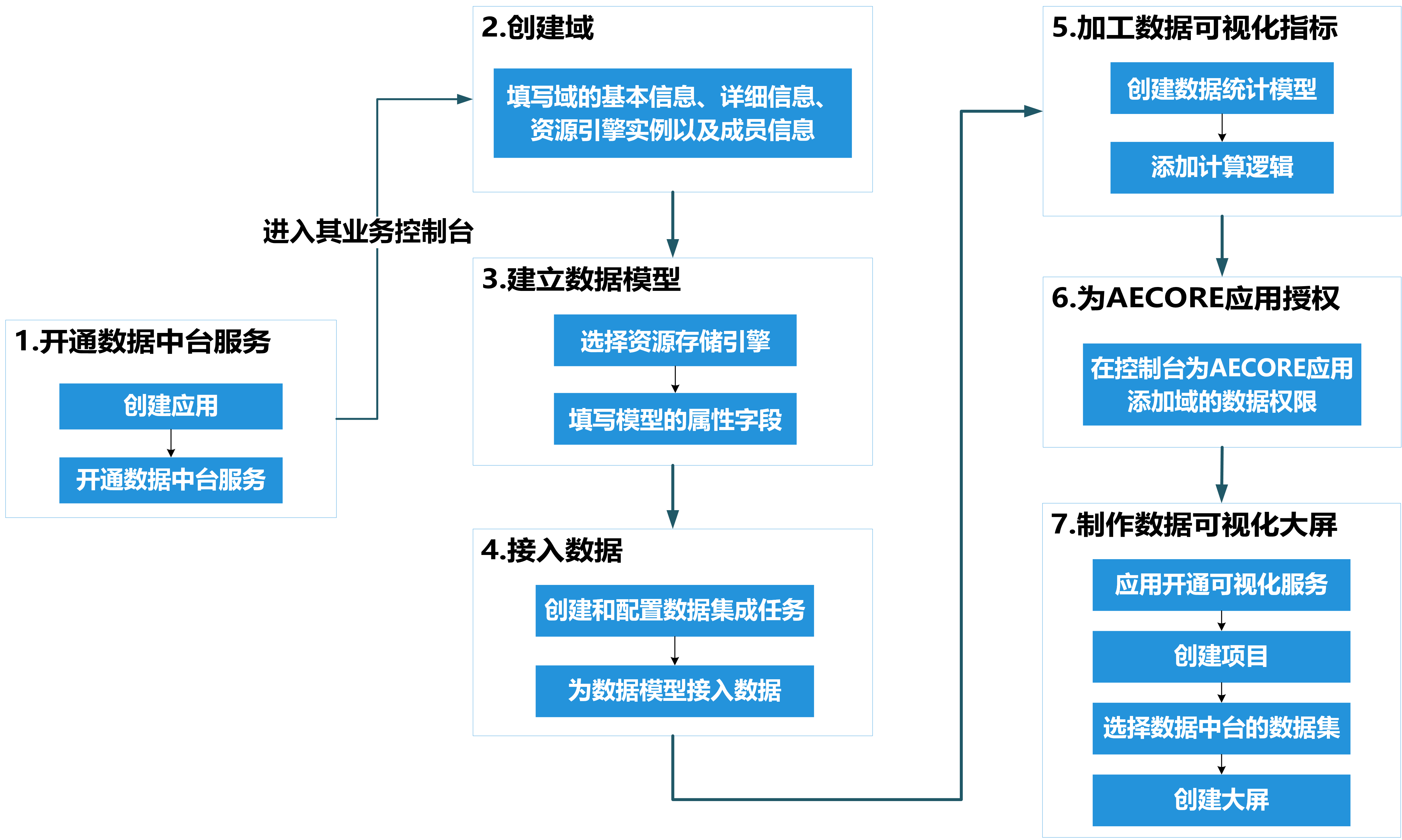 开发者可以自助在平台完成数据接入,处理和分析全过程,并开发数据服务供应用程序调用