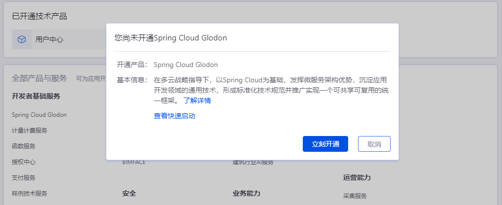 # 2.选择并开通Spring Cloud Glodon服务