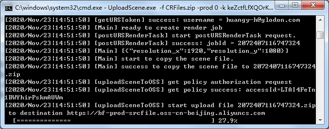 在实际产品集成时,场景上传过程由业务产品通过交互界面操作触发,所有命令参数由产品设置和导出,不会出现本步骤中的命令行画面。